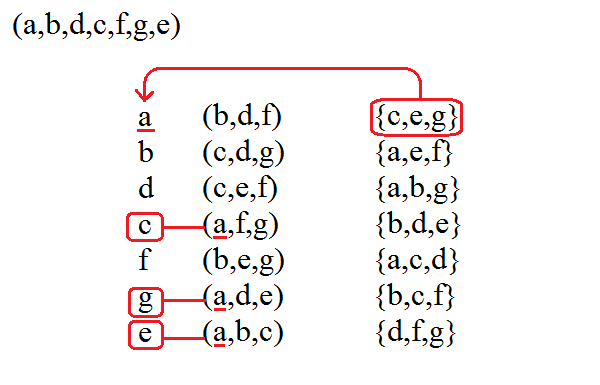 c = 1 => [a,f,g] static with {b,d,e} (ii)
