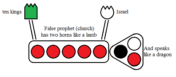 The false prophet exercises the freedom granted it by the first beast (the NWO or USA) so that the image to the beast may be constructed. It becomes the method by which the false doctrine in the church is distributed, Whilst Israel is not part of the image, the image is such that the leavening influence is the synagogue of satan inside the church (riding that false doctrine gained of physical Israel), which is certainly not physical Israel which is separate from the image (Just as true spiritual Israel is separate from the laodicean Church as in philadelphia - yet physical Israel is not saved in Jesus Christ, nor by any other name.)